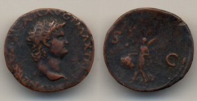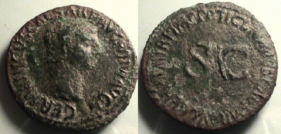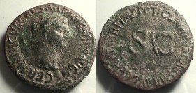 Germanicus, Æ as Struck A.D. 50-54 under Tiberius. Obv: GERMANICVS CAESAR TI. AVG. F. DIVI. AVG. N. Germanicus, head, bare, r . Rx: TI. CLAVDIVS CAESAR AVG. GERM. P. M. TR. P. IMP. P. P. around S.C. |