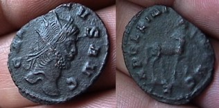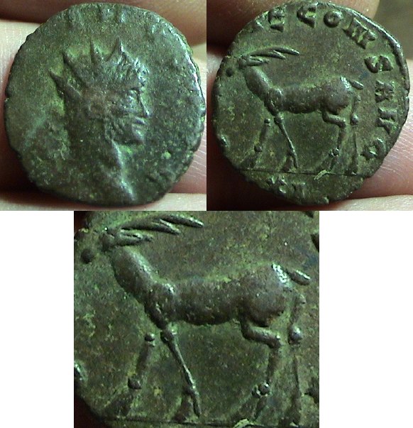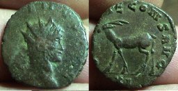 Gallienus 253 - 268 CE Æ Antoninianius Obv: Radiate bust right. Rx: Stag walking left. Part of the Gallienus menagerie series; a favorite among collectors. For more on this series, check outthis site. | reference - Cohen 160. |
