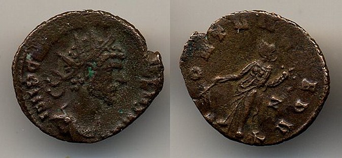 Quintillus 270 CE ÆAntoninianius Obv: Radiate bust right Rev: FORTUNA REDUX; Fortuna w/ rudder and cornucopiae; Z in right field | reference - Sear 3188 |