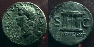 Divus Augustus. 27 BCE-14 CE. Æ As (15.92 gms) Obv: DIVVS AVGVSTVS PATER, radiate head left. Rx: Altar, S C at sides, [P]ROVIDENT below. |
