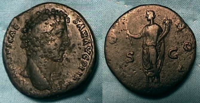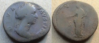 Faustina Sr. Wife of Antonius PIus 138 -161 CE Sestertius 22.08 gm Obv: Draped bust right. Rx: Pietas sprinkling incense on altar. | RIC II 76 |