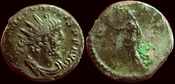 Victorinus 268 - 270 CE Æ Antoninianius Obv: Radiate bust right Rev: Pax standing left, holding branch & Sceptre; V* in field. | reference - Sear3166 |