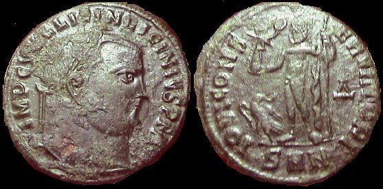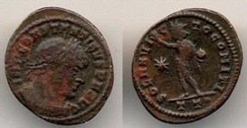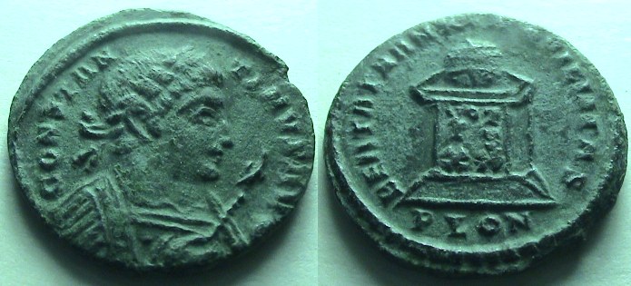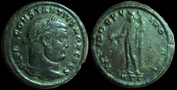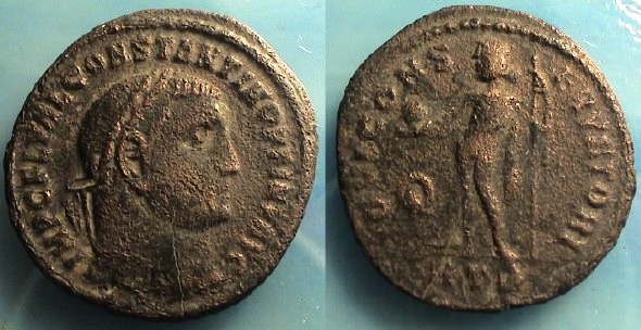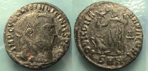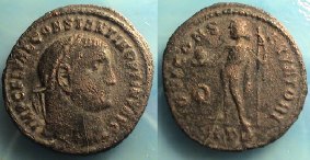 Obv: IMP C FL VAL CONSTANTINVS PF AVG, laureate head right