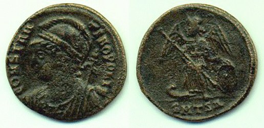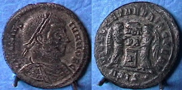 Obv: IMP CONSTANT-INVS PF AVG - Helmeted bust right, cuirassed