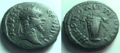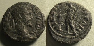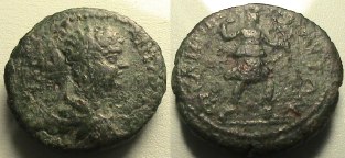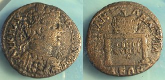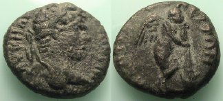 Obv: Laureate head of Septimius to r., Greek legend A KL SEP SEVEROS .
