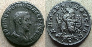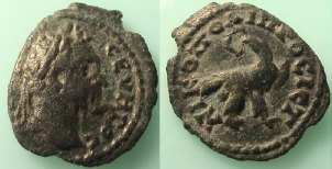 Rev: NIKOPOLI PPOCICT eagle standing left with wreath in its beak.