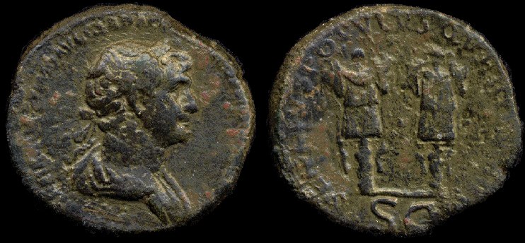 Rx: S P Q R OPTIMO PRINCIPI, S C in fields; Pax standing left with