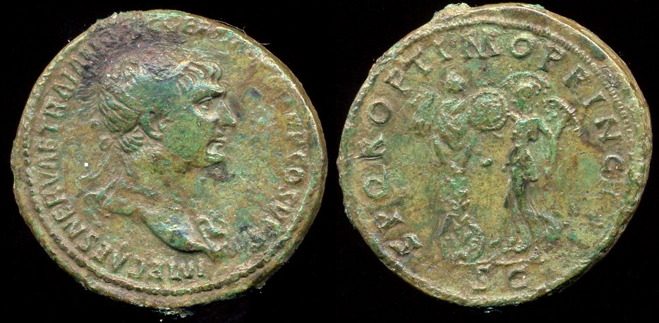 Rx: S.P.Q.R.OPTIMO.PRINCIPI/S.C., Trajan crowned by victory - both