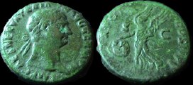 Rx: Rev: S P Q R OPTIMO PRINCIPI, S C in fields, Victory standing left, crowning trophy and holding palm frond.