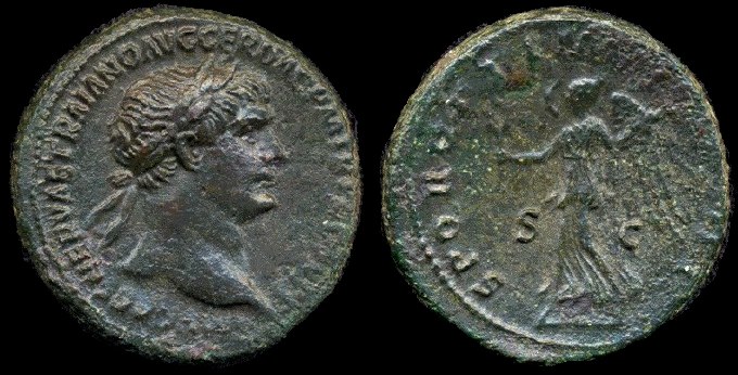 Rx: S.P.Q.R.OPTIMO.PRINCIPI/S.C., Trajan crowned by victory - both