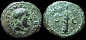 Rx: Rev: S P Q R OPTIMO PRINCIPI, S C in fields, Victory standing left, crowning trophy and holding palm frond.