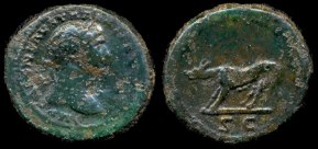 Obv: Laureate Bust of Hercules (Trajan?) right wearing lion's